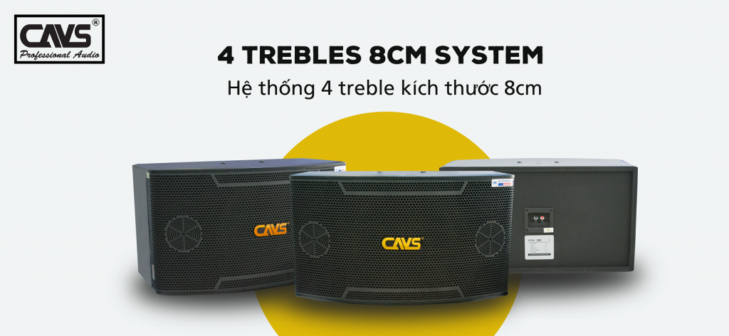 Được thiết kế với 4 đường tiếng Treble với đường kính 8Cm, sử dụng Màng loa giấy (lụa) cho tiếng hát ấm, rõ nét và mềm mại