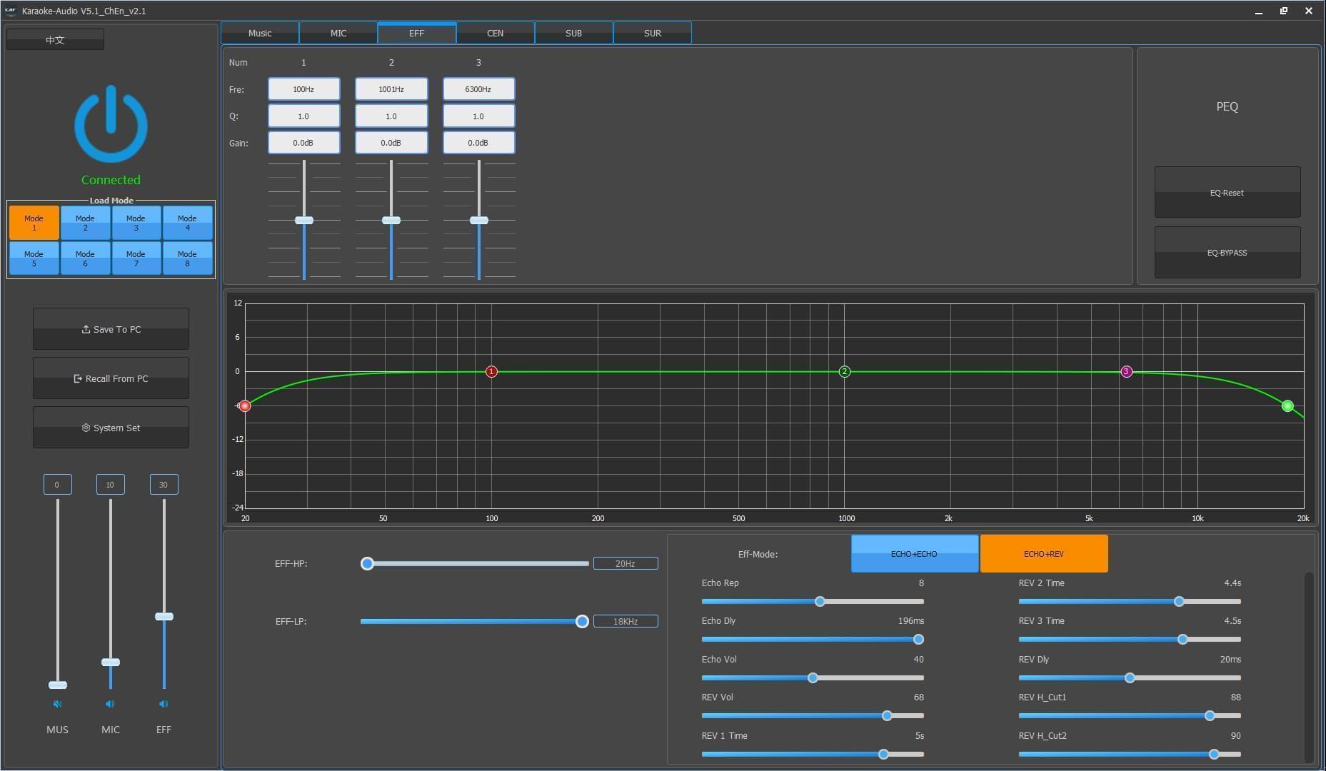 Giao diện phần mềm CAF TA-1000 rất trực quan về dễ dàng cho người sử dụng, với đầy đủ các tính năng như chống hú tự động nhiều cấp độ, các cổng output được điều khiển độc lập tăng khả năng tùy phối ghép của khách hàng.